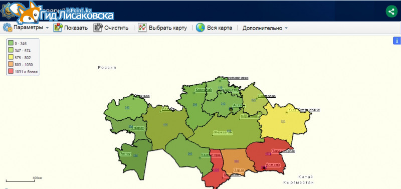 На снимке: карта аварийности Казахстана.